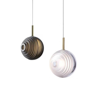 โคมไฟระย้าแก้วทรงกลมทรงกลมแบบทันสมัยพร้อมแกนโลหะสำหรับห้องรับประทานอาหารห้องนั่งเล่นและบาร์