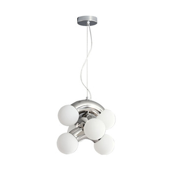โคมระย้าแก้วโมเลกุลที่ทันสมัยโคมไฟระย้าหลายลูกโลกโลหะโครเมี่ยมสำหรับห้องนั่งเล่นห้องรับประทานอาหารและโครงการโรงแรม